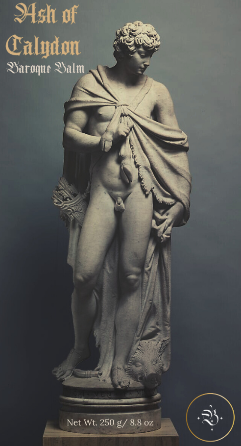 Ash of Calydon opens with bright, untamed fruits—pineapple, black currant, and apple sharpened by bergamot’s gleam. Beneath the gleam lies smoke: birch, and oak moss smolder beside patchouli and ambergris, grounded in musk and the soft burn of vanilla. A scent of wild glory and fate foretold—the hunter and the pyre, bound as one.